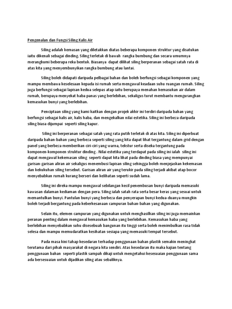 Kemasan keras membabitkan jubin seramik jubin batu seperti marmar dan granit tanah liat terracotta simen dan batu pasir serta panel kayu. Pengenalan dan Fungsi Siling Kalis Air Siling adalah kemasan yang diletakkan diatas beberapa komponen struktur. Macam - Macam pelbagai Jenis Siling.